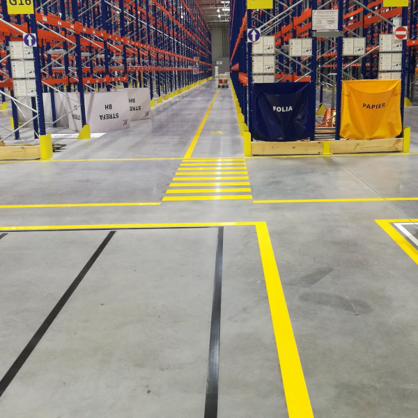 Dobrze zaprojektowane oznakowanie poziome magazynu pozwala na stworzenie optymalnie zorganizowanego miejsca pracy pod względem zasad BHP, jak również procesów produkcyjnych i logistycznych. Dokładne wyznaczenie ciągów i dróg transportowych w magazynach znacznie zmniejsza, a nawet eliminuje możliwość występowania wypadków oraz w sposób znaczący podnosi efektywność wykonywanych prac.