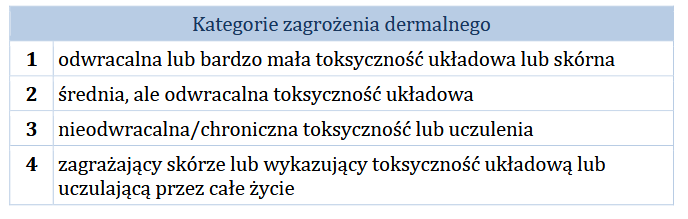 | 1 | bardzo małe stężenie czynnika mającego kontakt ze skórą |