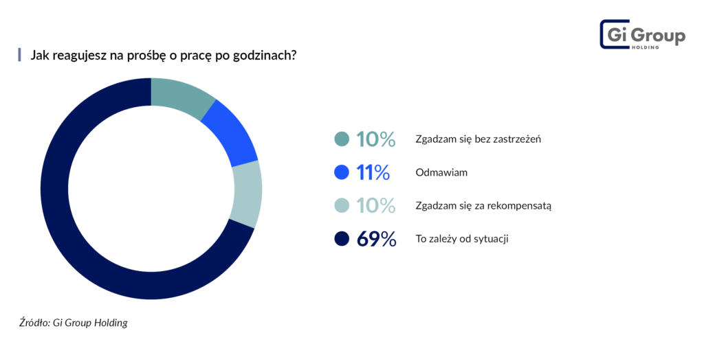 Dane z ankiety Gi Group Holding pokazują, że brak jasnych oczekiwań dotyczących komunikacji po godzinach pracy oraz nieformalne wymagania przełożonych bezpośrednio zwiększają presję emocjonalną odczuwaną przez pracowników. W wielu zespołach brakuje jasnego sygnału, że czas wolny należy chronić. Jest wręcz odwrotnie. Niepisanym standardem staje się dostępność poza godzinami pracy.